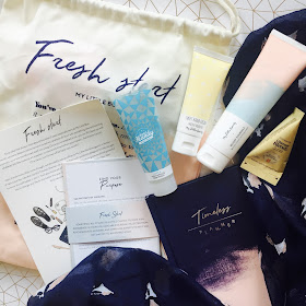 The box this month had a 'Fresh Start' theme, being the first of the year and actually wasn't a box at all, but more of a bag with an inspiring paragraph on the front. I was really excited to see what was inside.